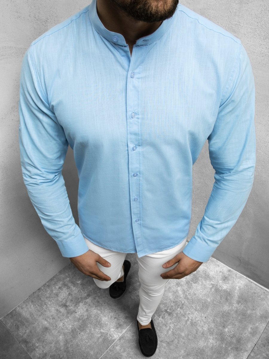 - KOSZULA MĘSKA Z DŁUGIM RĘKAWEM Z NAJNOWSZEJ KOLEKCJI. WYKONANA Z PRZEWIEWNEGO MATERIAŁU. ZAPINANA NA GUZIKI. KOŁNIERZYK TYPU STÓJKA
