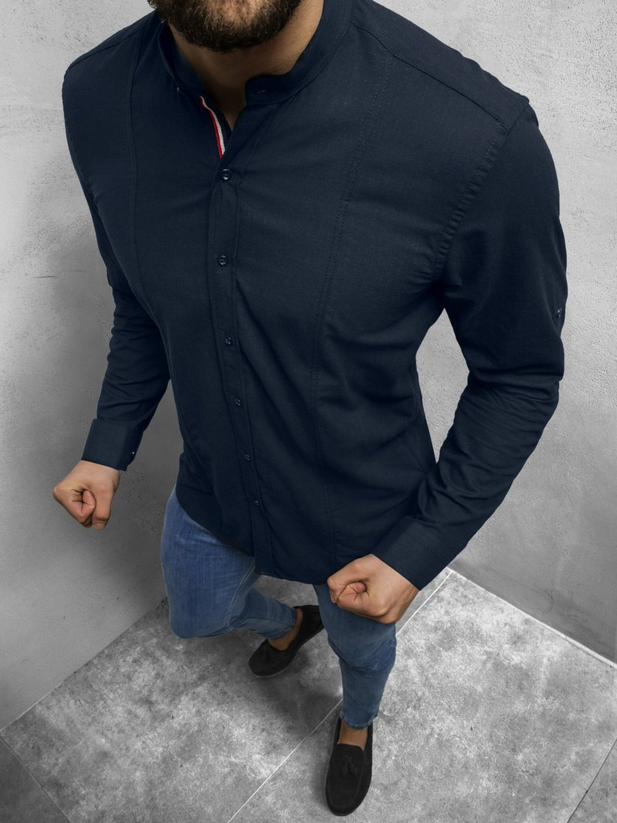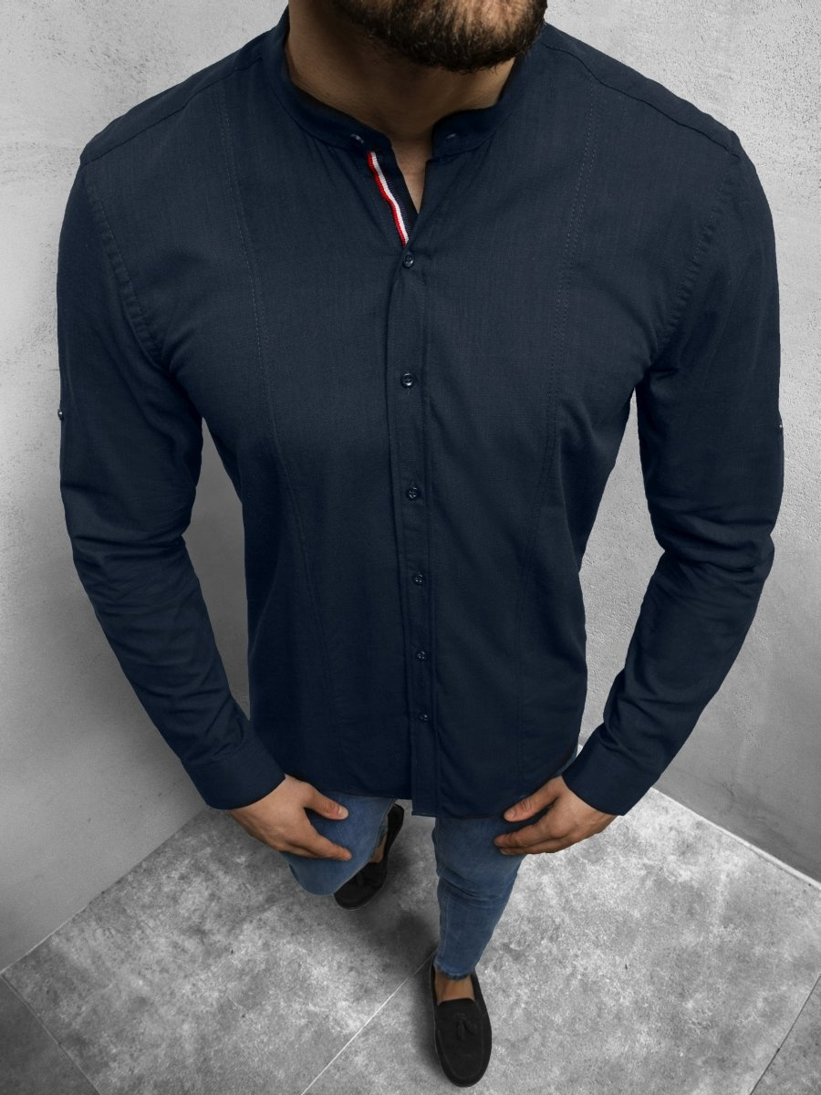 - KOSZULA MĘSKA Z DŁUGIM RĘKAWEM Z NAJNOWSZEJ KOLEKCJI. WYKONANA Z PRZEWIEWNEGO MATERIAŁU. ZAPINANA NA GUZIKI. KOŁNIERZYK TYPU STÓJKA