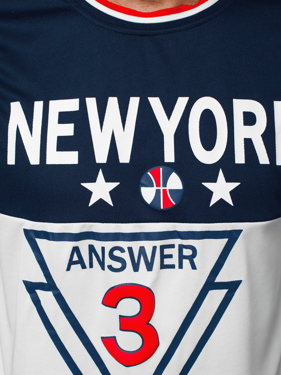 W skład męskiego zestawu koszykarskiego wchodzi koszulka bez rękawów z nadrukiem i kontrastowym łączeniem materiałów oraz spodenki z kieszeniami po bokach, do których można schować niezbędne drobiazgi, takie jak klucze, portfel czy telefon. Całość jest utrzymana w odcieniach niebieskiego, granatu oraz bieli. Komplet został wykonany w całości z poliestru, dzięki czemu ładnie dopasowuje się do sylwetki i nie krępuje ruchów.