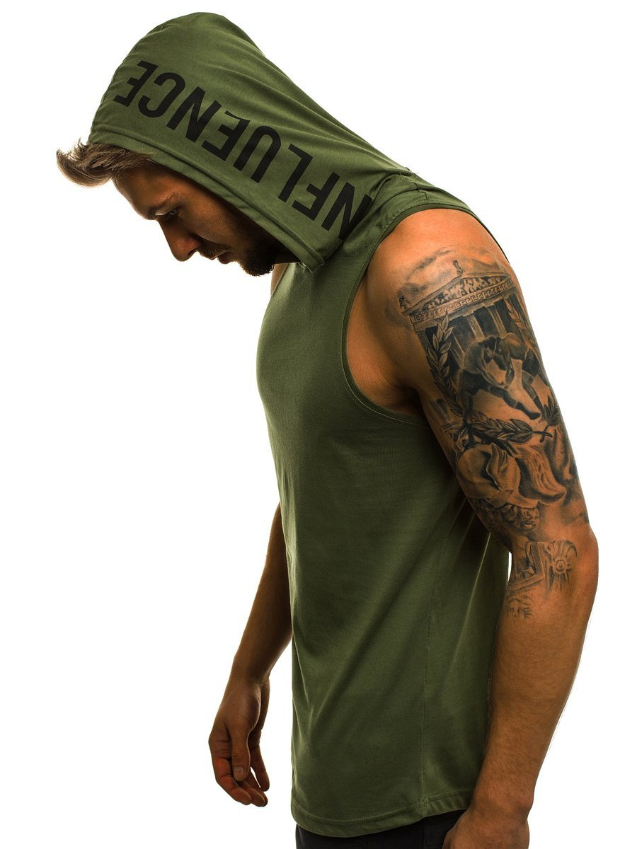 Koszulka bez rękawów z kapturem męska zielona OZONEE O/2537