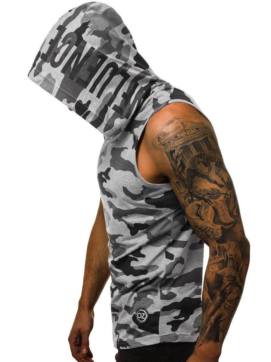 Koszulka została wykonana w 100% z bawełny – to materiał bardzo przyjemny dla skóry, wygodny w noszeniu, przyjemny i nie wywołujący reakcji alergicznych czy podrażnień. T-shirt posiada oryginalny fason odsłaniający ramiona, dzięki czemu doskonale sprawdzi się u osób, chcących wyeksponować swoją muskulaturę. Na uwagę zasługuje również praktyczny kaptur z efektownym nadrukiem.