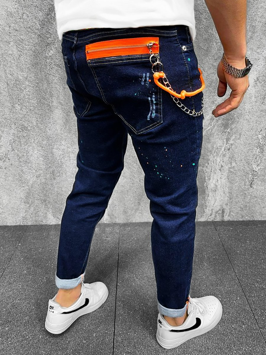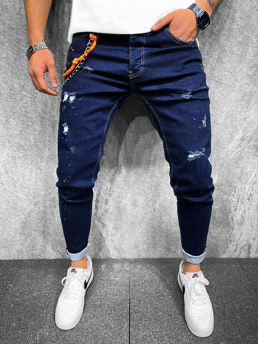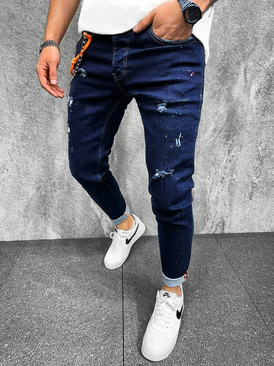 Spodnie mają wąskie nogawki typu rurki. Z przodu i z tyłu znajdują się kieszenie, do których można schować klucze czy telefon. Przetarcia na nogawkach oraz odpinany sznurek i łańcuch nadają spodniom oryginalnego wyglądu. Zostały one wykonane z bawełny z domieszką elastanu, dzięki czemu ładnie dopasowują się do sylwetki, są wygodne w noszeniu, miłe w dotyku i odporne na uszkodzenia oraz zagniecenia.