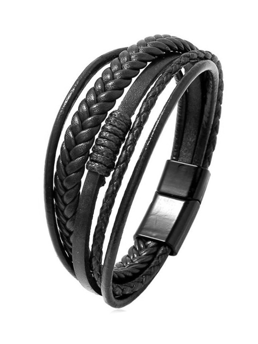 Bransoletka została wykonana z wysokiej jakości skóry naturalnej w kolorze czarnym. Zdobi ją pleciony wzór oraz rzemyki. Bransoletka posiada metalowe zapięcie w tylnej części. Jej obwód to 20 centymetrów.