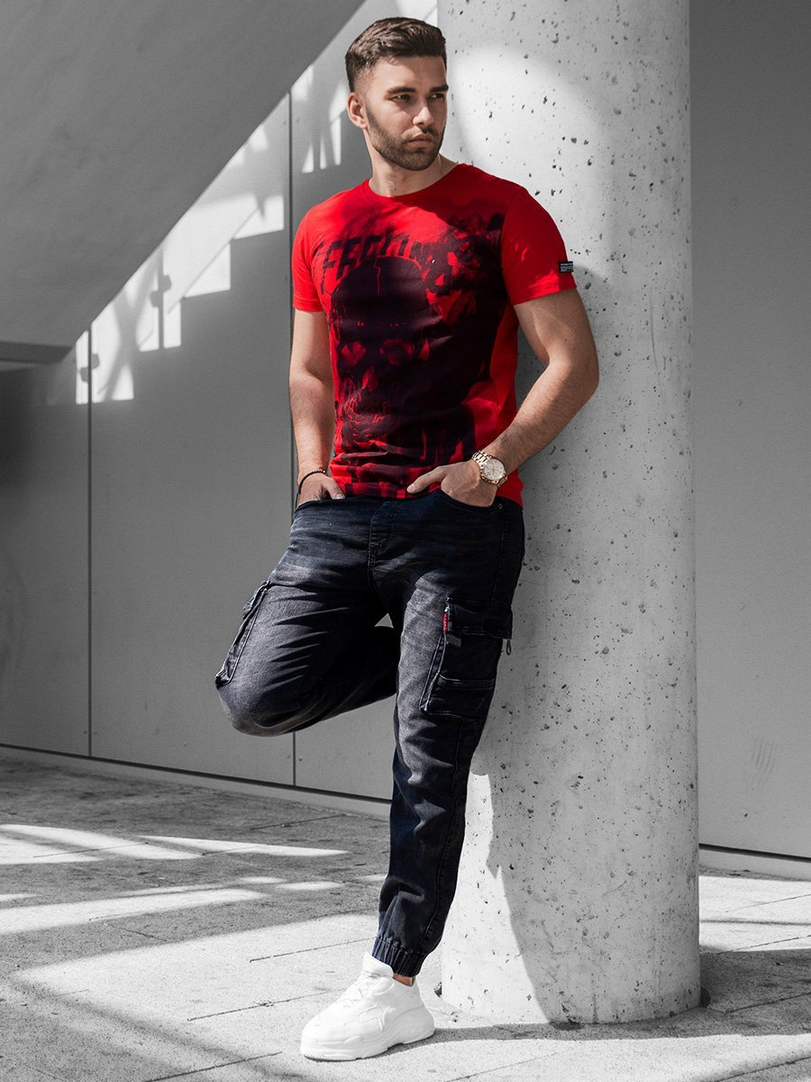 Na środku t-shirtu znalazł się duży nadruk z bardzo modnym w ostatnim czasie motywem czaszki, a na jego rękawie – niewielka naszywka. Koszulka ma okrągły dekolt typu U-Neck, który prezentuje się korzystnie na każdej figurze. Wykonano ją w całości z bawełny, dzięki czemu jest przewiewna i miła w dotyku.