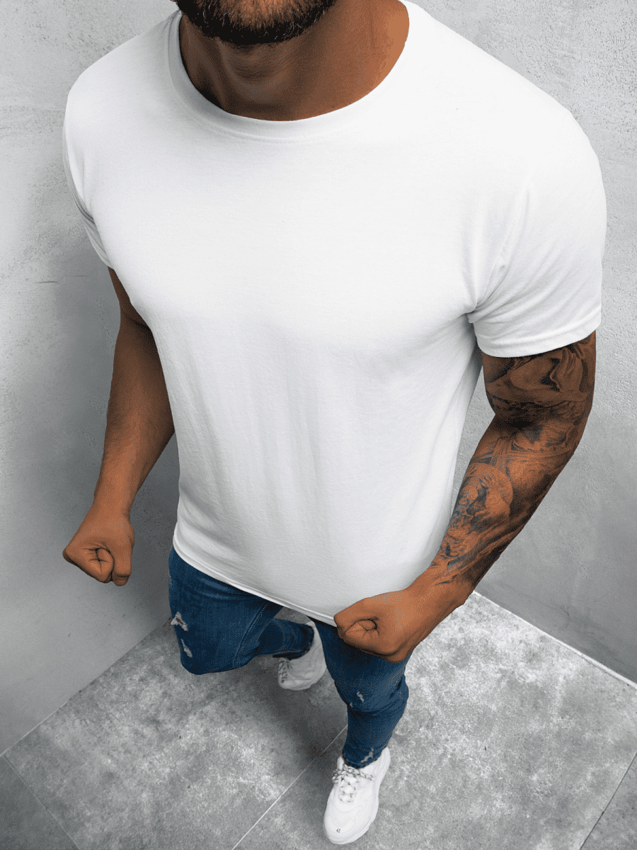 T-Shirt męski bez nadruku biały OZONEE O/BL83