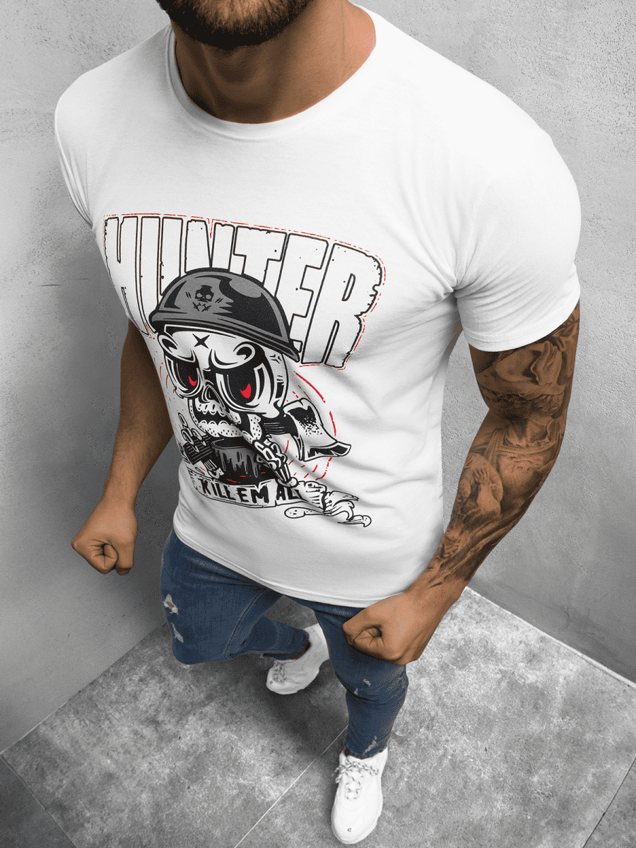 Z pomocą takiego t-shirtu można stworzyć całe mnóstwo modnych, casualowych stylizacji. Znakomicie będzie się on komponował z innymi męskimi ubraniami dostępnymi w asortymencie naszego sklepu internetowego. Koszulkę zestawić można na przykład z kurtką typu ramoneska, jeansami z dziurami i przetarciami oraz trampkami. T-shirt nadaje się na różne okazje. Założyć można go na przykład na spotkanie ze znajomymi, koncert, wyjście do kina, do szkoły czy na uczelnię.