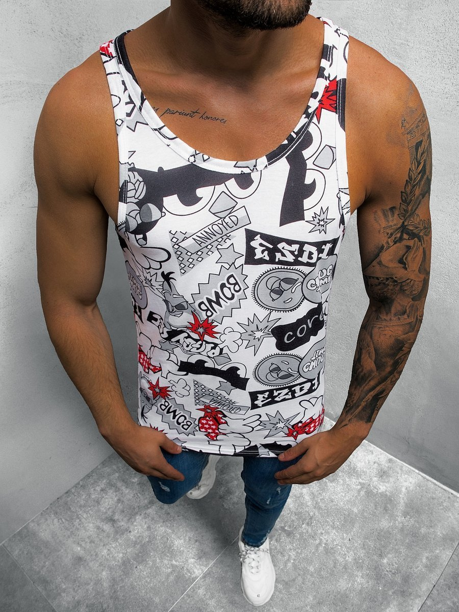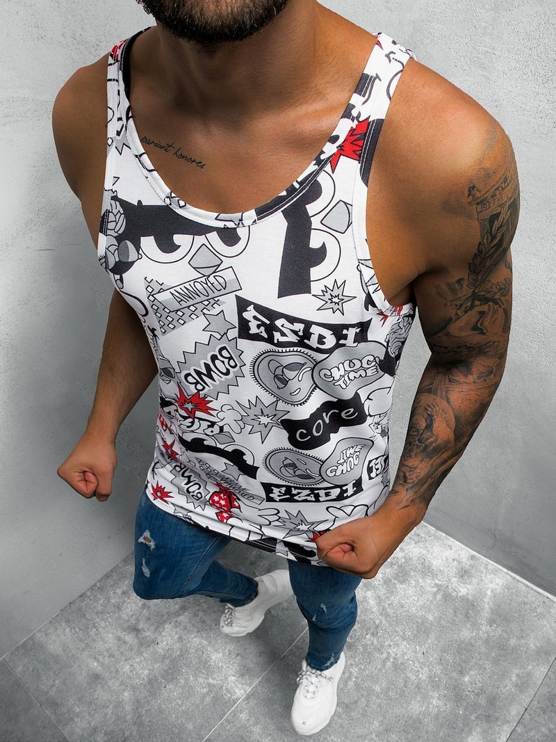 Koszulka pochodzi z najnowszej kolekcji. Nie posiada rękawów. Z przodu i z tyłu ma kolorowy, przkuwający wzrok nadruk. Tanktop został wykonany z połączenia bawełny oraz poliestru. Sprawia to, że jest wygodny w noszeniu, przyjemny w dotyku, ładnie dopasowuje się do sylwetki i nie gniecie się.