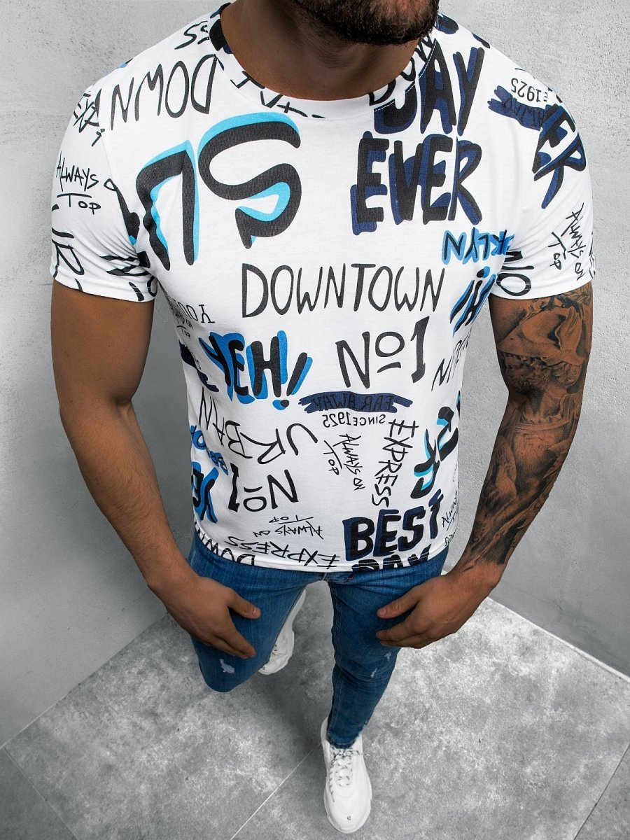 Męski t-shirt z kolorowymi napisami
