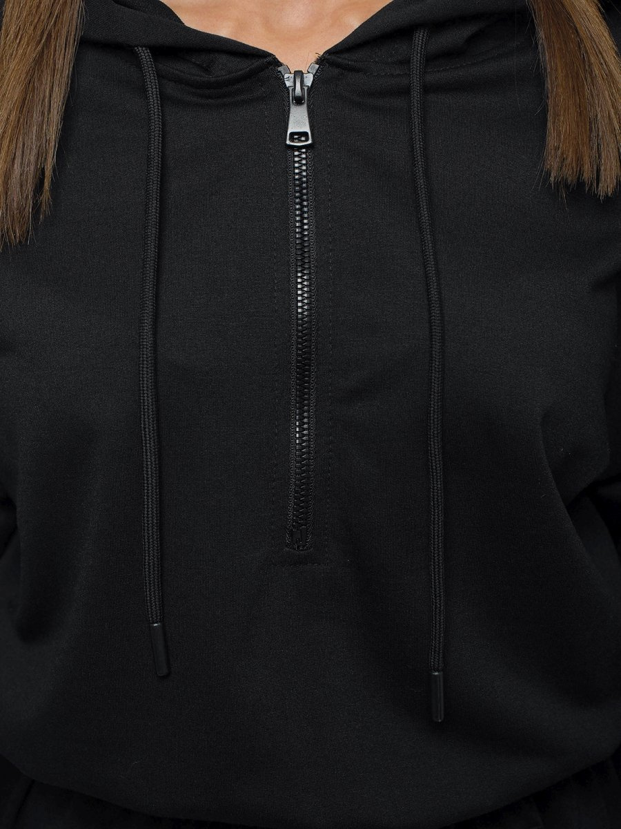 Sukienka pochodzi z najnowszej kolekcji. Jest wkładana przez głowę i posiada praktyczny kaptur, który bardzo dobrze sprawdza się w chłodne, wietrzne dni. Dół oraz rękawy sukienki zostały wykończone ściągaczami nadającymi jej sportowego charakteru. Ma ona taliowany fason, dzięki czemu efektownie podkreśla talię. Sukienka została wykonana z połączenia bawełny, poliestru oraz elastanu. Sprawia to, że ładnie dopasowuje się do sylwetki, jest wygodna w noszeniu i przyjemna w dotyku.