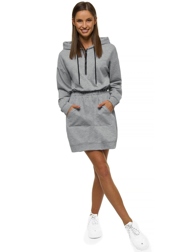 Sukienka pochodzi z najnowszej kolekcji. Jest wkładana przez głowę i posiada praktyczny kaptur, który bardzo dobrze sprawdza się w chłodne, wietrzne dni. Dół oraz rękawy sukienki zostały wykończone ściągaczami nadającymi jej sportowego charakteru. Ma ona taliowany fason, dzięki czemu efektownie podkreśla talię. Sukienka została wykonana z połączenia bawełny, poliestru oraz elastanu. Sprawia to, że ładnie dopasowuje się do sylwetki, jest wygodna w noszeniu i przyjemna w dotyku.