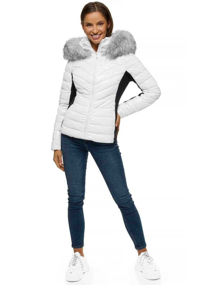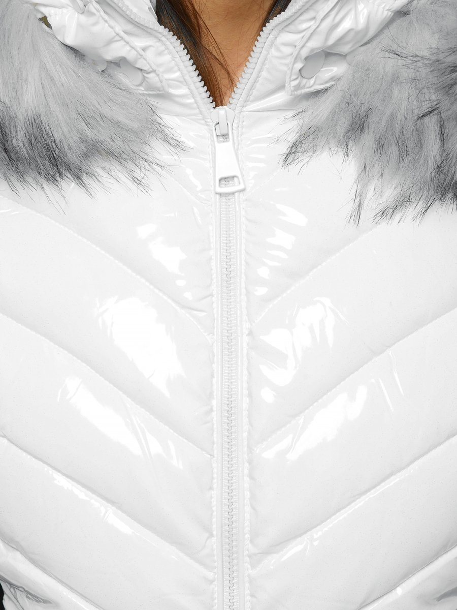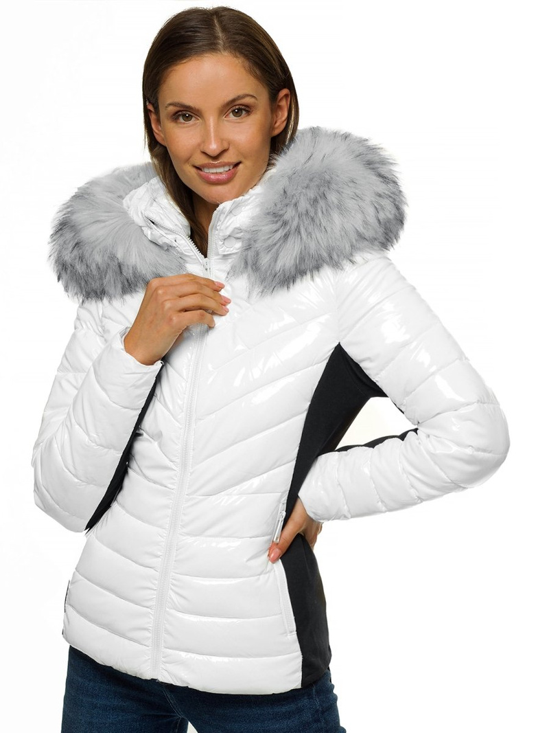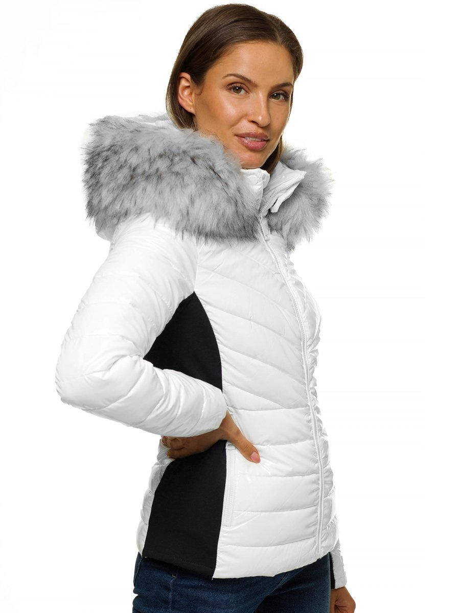 Kurtka zimowa damska z futerkiem biała OZONEE O/DK059/28