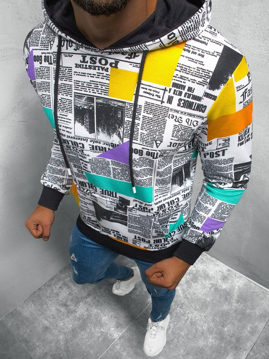 Bluza pochodzi z najnowszej kolekcji. Jest wkładana przez głowę i posiada praktyczny kaptur, który bardzo dobrze sprawdza się w chłodne, wietrzne dni. Dół i rękawy bluzy zostały wykończone ściągaczami, które nadają jej sportowego charakteru. Ma ona również kieszonkę typu kangurka. Na przodzie oraz z tyłu bluzy znajdują się efektowne, kolorowe nadruki. Została ona wykonana z połączenia bawełny i poliestru, co sprawia, że ładnie dopasowuje się do sylwetki i jest przyjemna w dotyku oraz wygodna w dotyku.