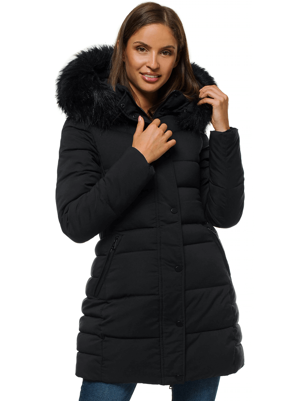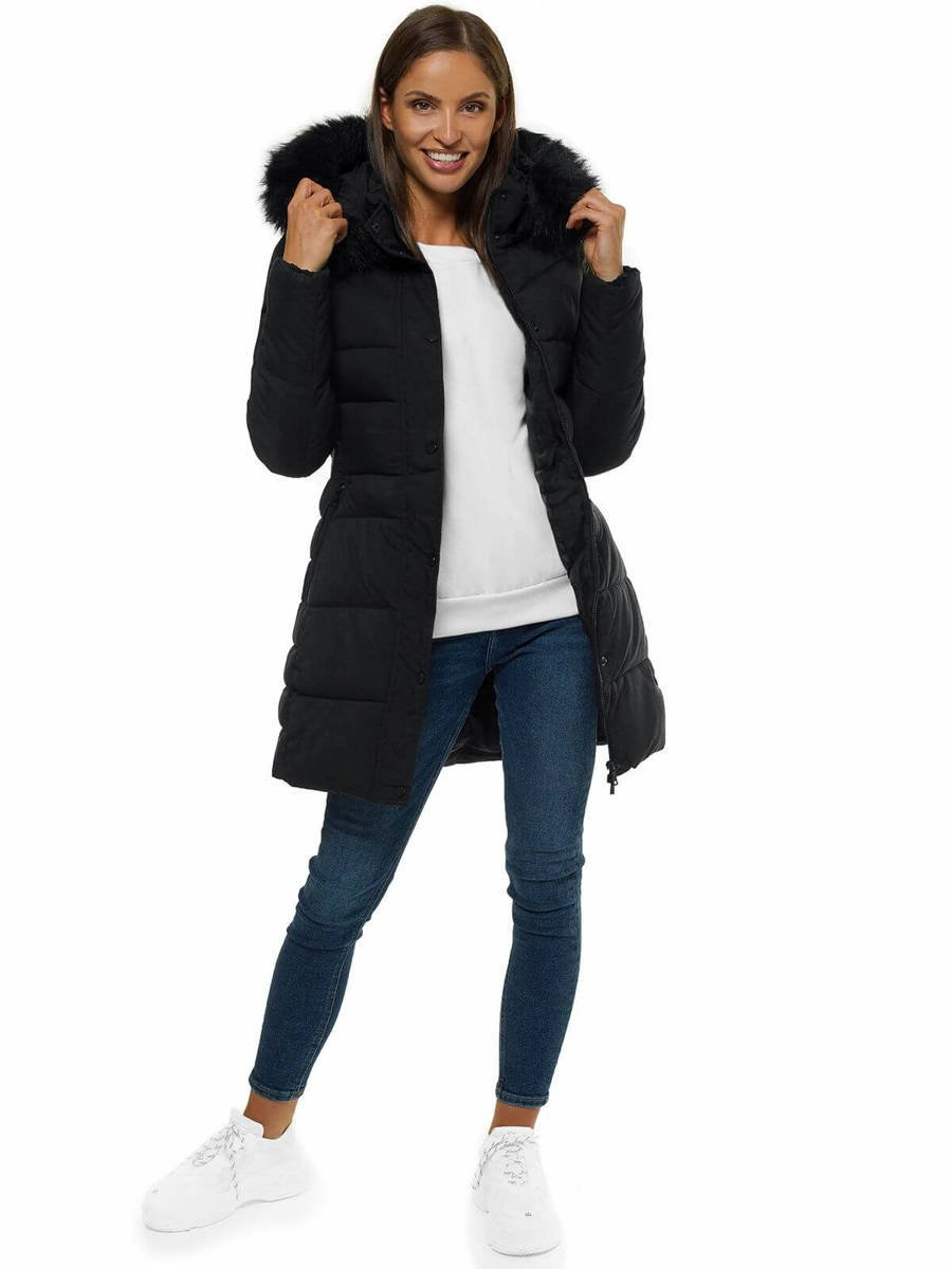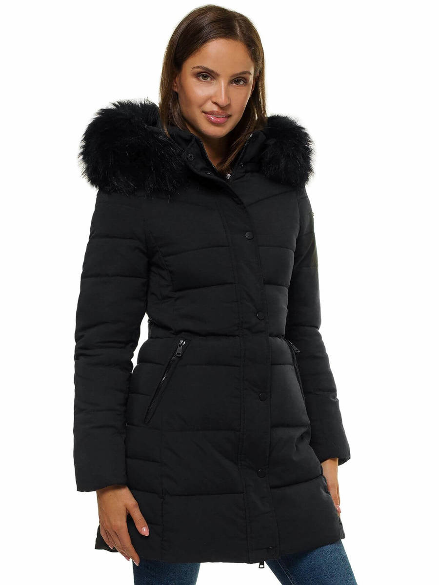 Kurtka zimowa damska parka z futerkiem czarna OZONEE O/M202/1