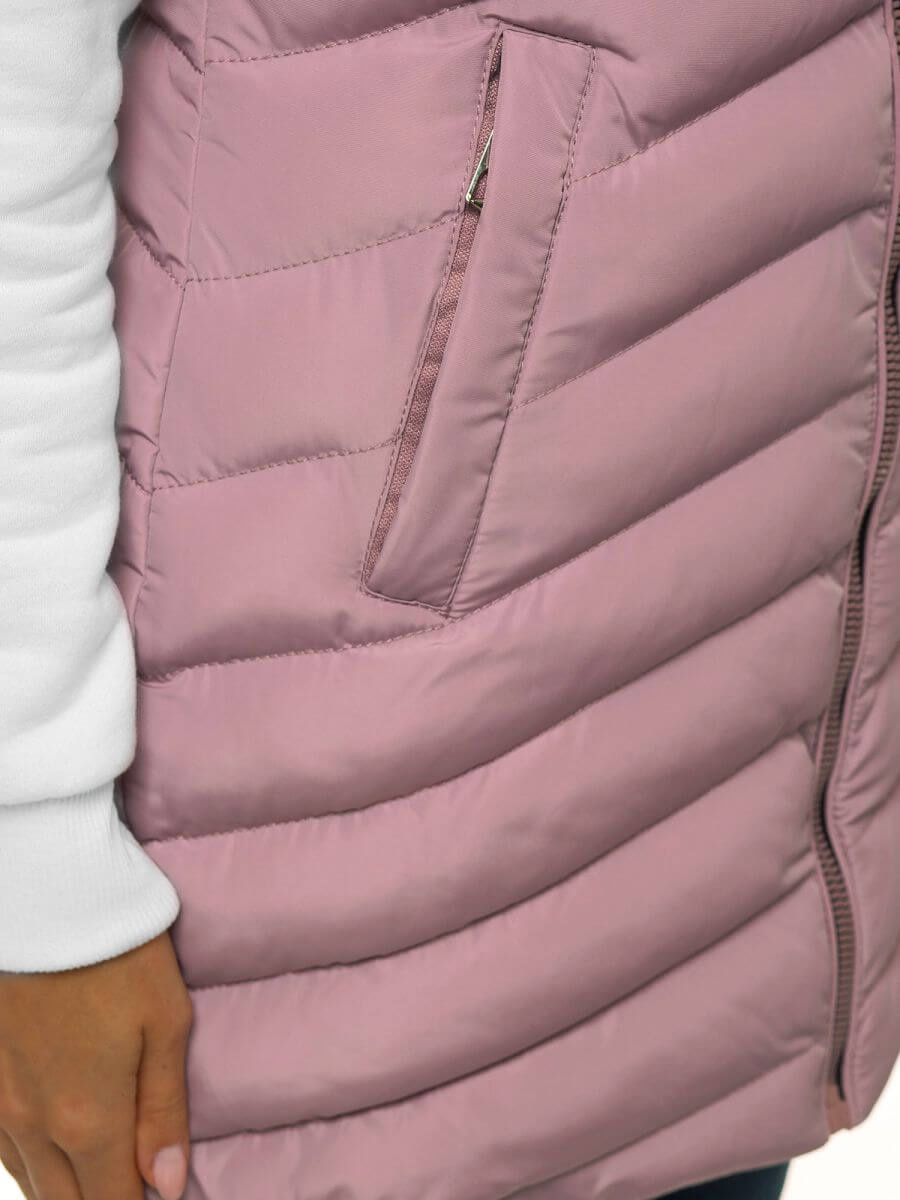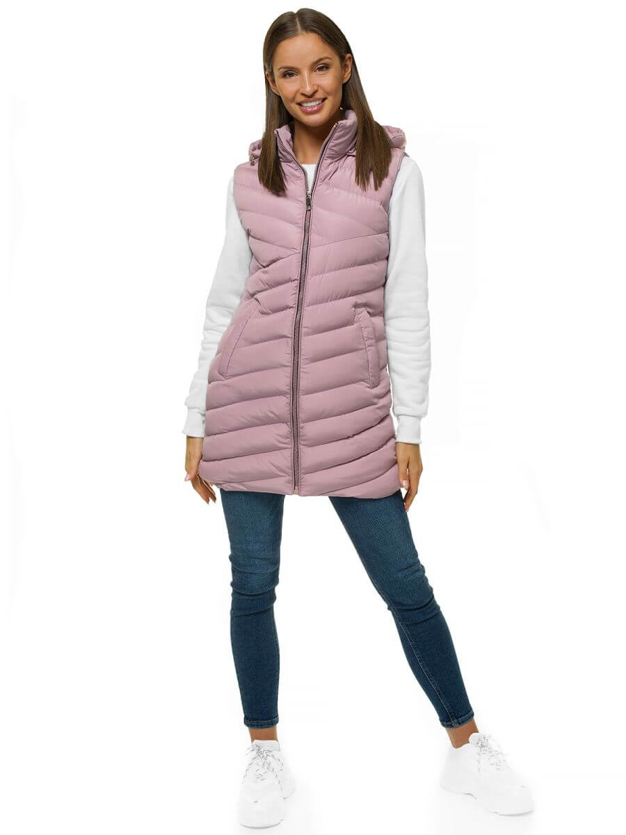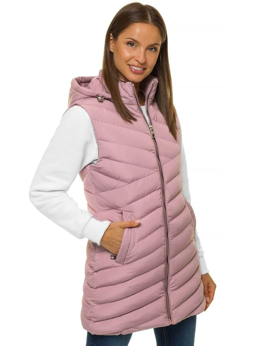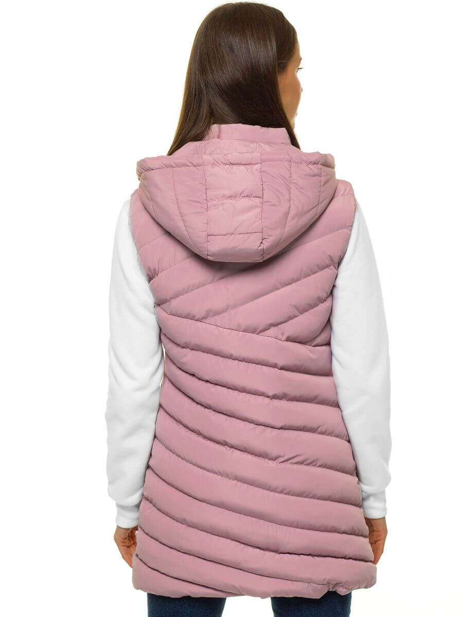 Kamizelka damska długa pikowana z kapturem pudrowa OZONEE N/6805/5