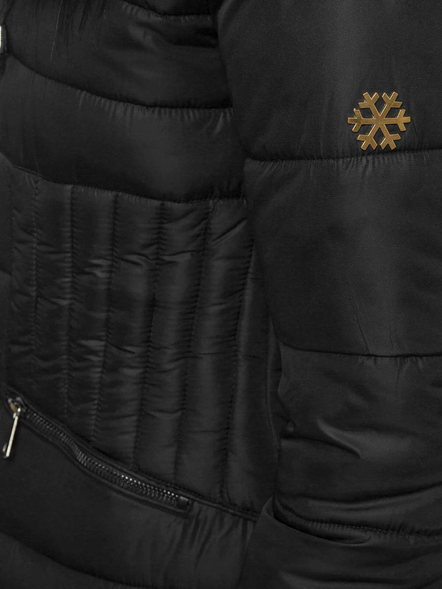 Kurtka pochodzi z najnowszej kolekcji. Posiada praktyczny kaptur z odpinanym futerkiem, który nie tylko elegancko się prezentuje, lecz również skutecznie chroni przed zimnem, chłodnymi podmuchami wiatru i opadami deszczu oraz śniegu. Po bokach znajdują się kieszenie na zamek błyskawiczny, do których można schować telefon czy klucze. Kurtka została wykonana z nylonu, a jej podszewka — z poliestru.