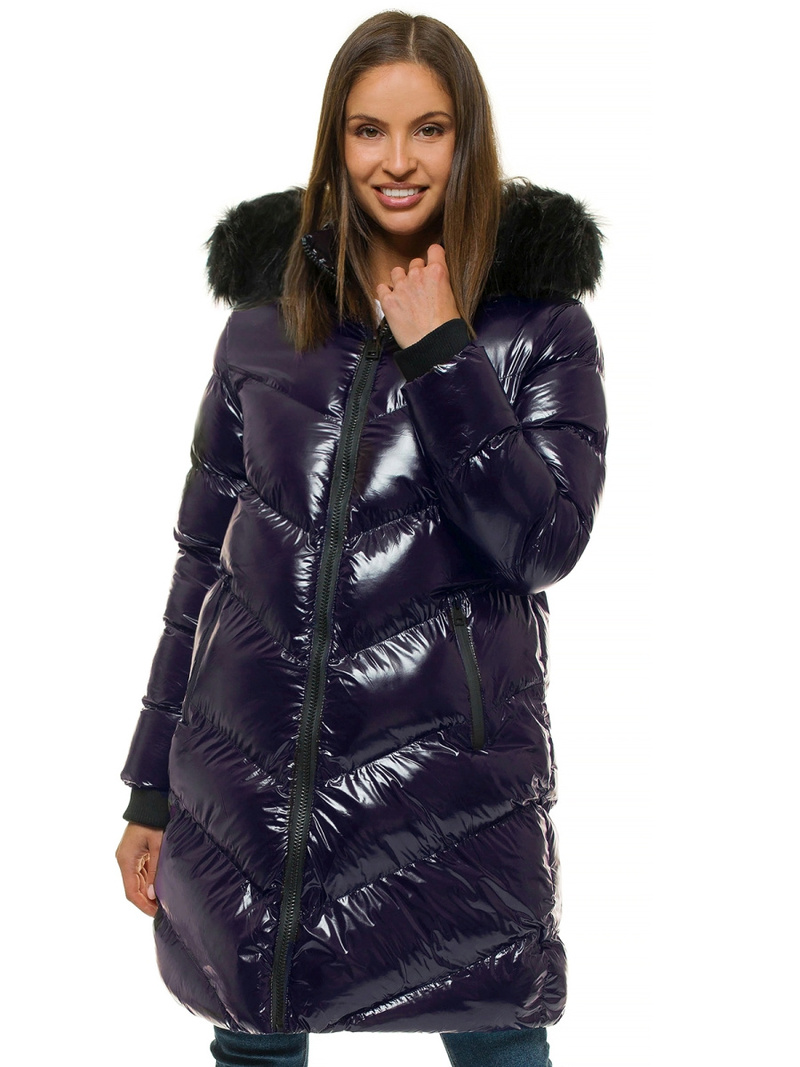 Kurtka zimowa damska parka z futerkiem ciemno-fioletowa OZONEE JS/M23069/4