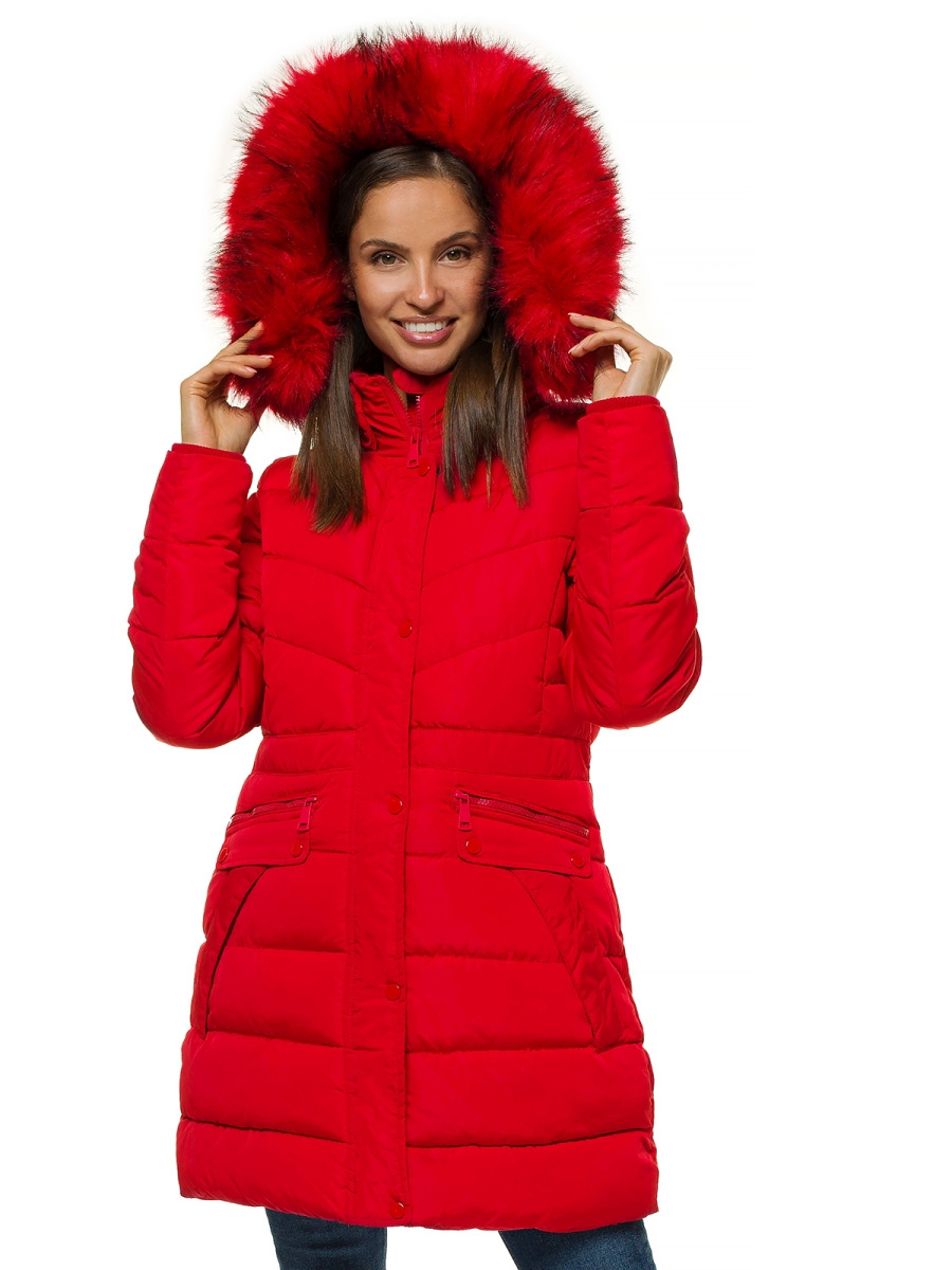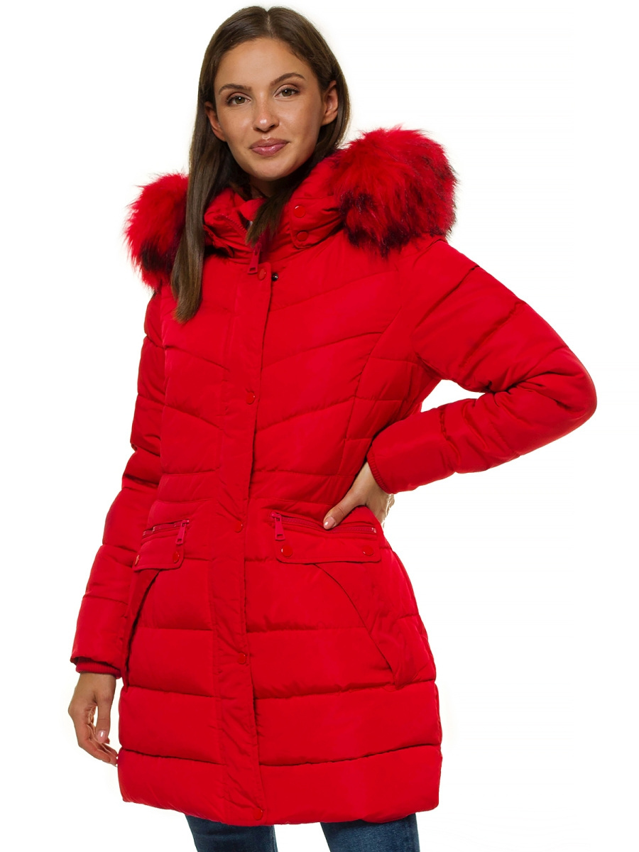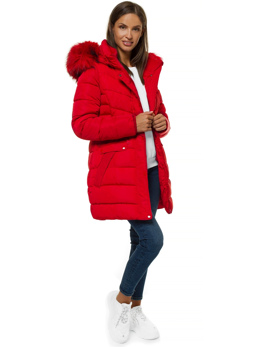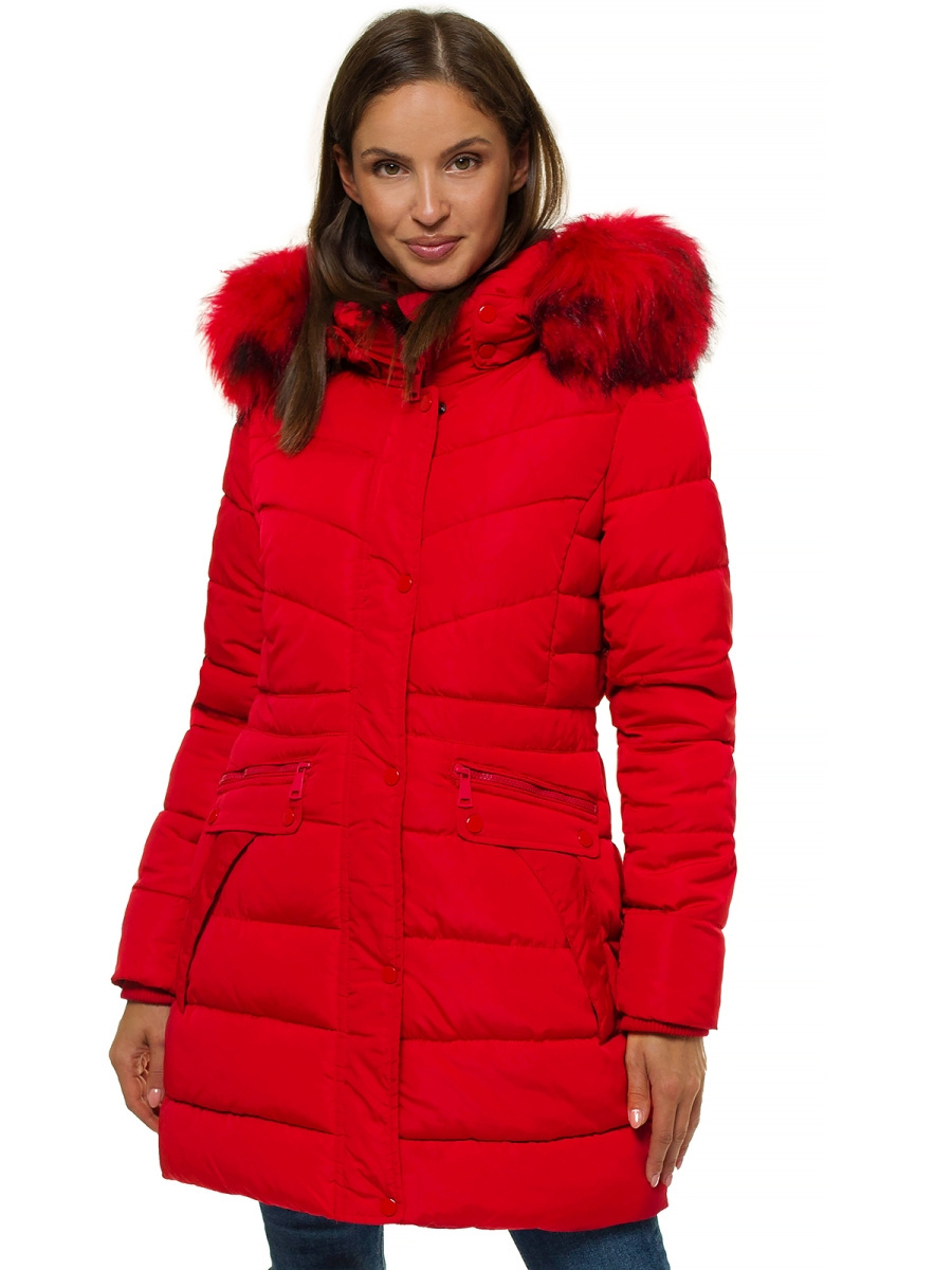Kurtka zimowa damska parka z futerkiem czerwona OZONEE O/M1556/4