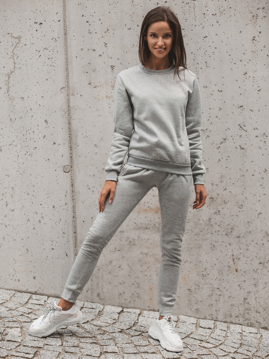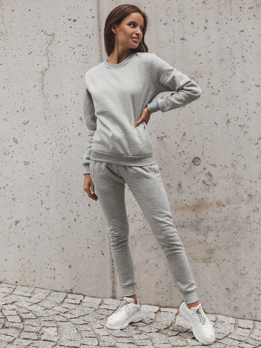 Komplet składa się z dwóch elementów. Są nimi wkładana przez głowę bluza z rękawami wykończonymi ściągaczami oraz spodnie z kieszeniami po bokach ze ściągaczami. Zestaw został wykonany z połączenia bawełny oraz poliestru. Sprawia to, że jest wygodny w noszeniu, przyjemny w dotyku, nie rozciąga się z czasem, nie gniecie i ładnie dopasowuje się do sylwetki.