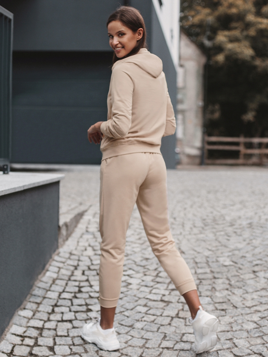 W skład zestawu wchodzą 2 elementy. Są nimi wkładana przez głowę bluza z długim rękawem oraz spodnie z kieszeniami po bokach, do których można schować niezbędne drobiazgi, takie jak klucze, telefon czy portfel. Komplet został wykonany z połączenia bawełny, poliestru oraz elastanu. Sprawia to, że jest wygodny w noszeniu, przyjemny w dotyku, ładnie dopasowuje się do sylwetki, nie rozciąga się i nie gniecie.