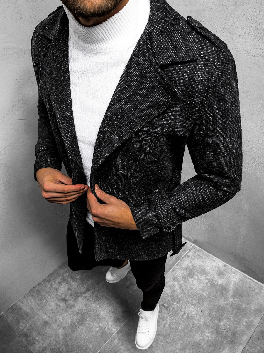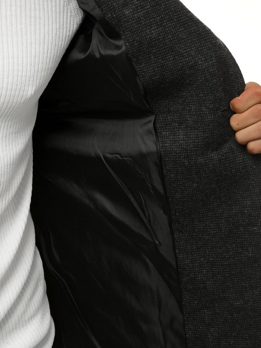 Płaszcz męski z pagonami ciemno-grafitowy OZONEE O/5627