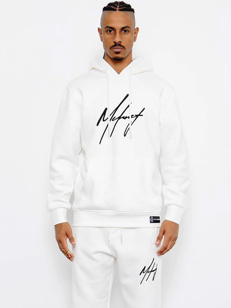 Zestaw męski ma oversize’owy fason. Składa się on ze spodni z kieszeniami po bokach i z tyłu, do których można schować niezbędne drobiazgi oraz bluzy z kieszenią typu kangurka oraz praktycznym kapturem, który skutecznie chroni przed zimnem i wiatrem. Komplet został wykonany z połączenia bawełny oraz poliestru, dzięki czemu ładnie dopasowuje się do sylwetki, jest wygodny w noszeniu i przyjemny w dotyku.