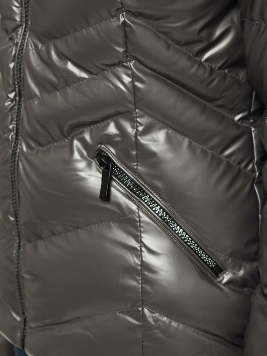 Kurtka pochodzi z nowej kolekcji. Pokrywające ją pikowania nadają jej oryginalnego charakteru. Kurtka ma praktyczny, odpinany kaptur z futerkiem, który nie tylko prezentuje się efektownie, lecz również skutecznie chroni przed chłodem, wiatrem i opadami atmosferycznymi. Po bokach kurtki znajdują się kieszenie na zamek błyskawiczny, do których można schować drobiazgi, takie jak klucze, telefon czy portfel. Została ona wykonana z wysokiej jakości poliestru, dzięki czemu ładnie dopasowuje się do sylwetki i szybko schnie.