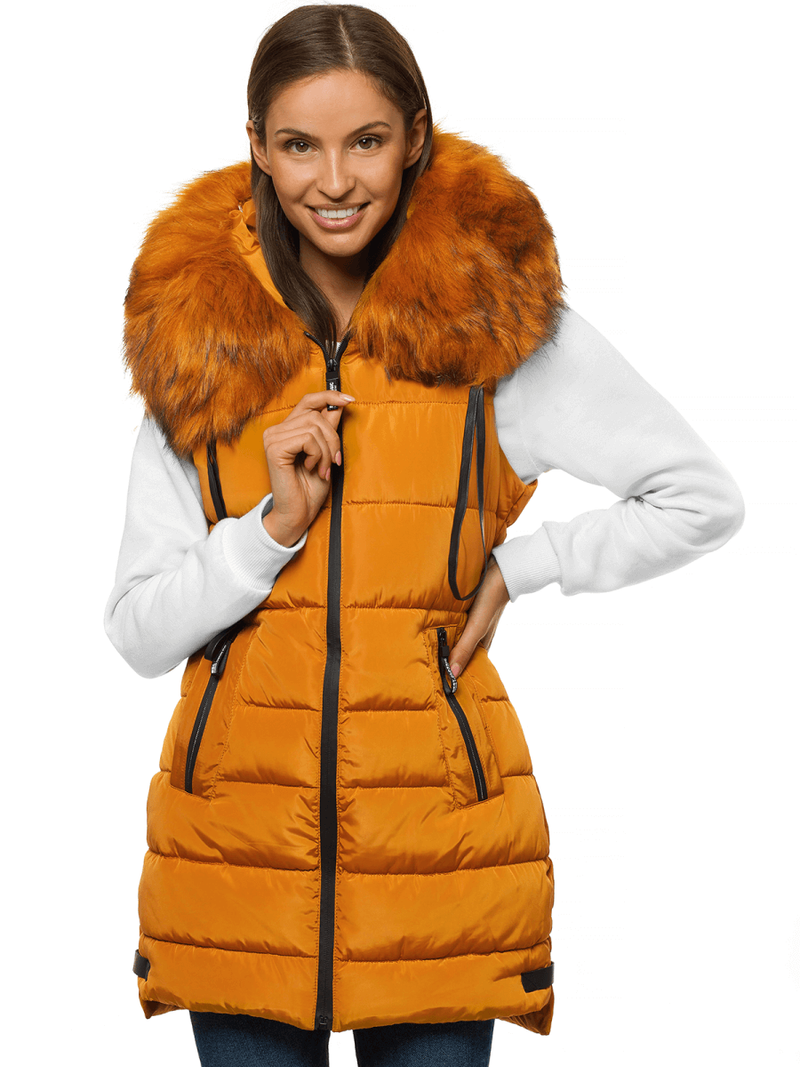Kamizelka pochodzi z najnowszej kolekcji. Ma długość przed kolano. Zdobiące ją pikowania nadają jej oryginalnego charakteru. Kamizelka ma praktyczny kaptur z odpinanym futerkiem, który bardzo dobrze będzie się sprawdzał w chłodne, wietrzne dni. Po bokach znajdują się kieszenie, do których można schować niezbędne drobiazgi, takie jak telefon, portfel czy klucze. Kamizelka została wykonana w całości z wysokiej jakości poliestru, dzięki czemu ładne dopasowuje się do sylwetki i szybko schnie.