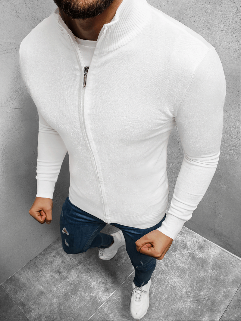 Sweter pochodzi z najnowszej kolekcji. Jest zapinany na zamek błyskawiczny i posiada kołnierz. Sweter został wykonany z połączenia akrylu, poliestru, nylonu oraz wiskozy, dzięki czemu ładnie dopasowuje się do sylwetki.