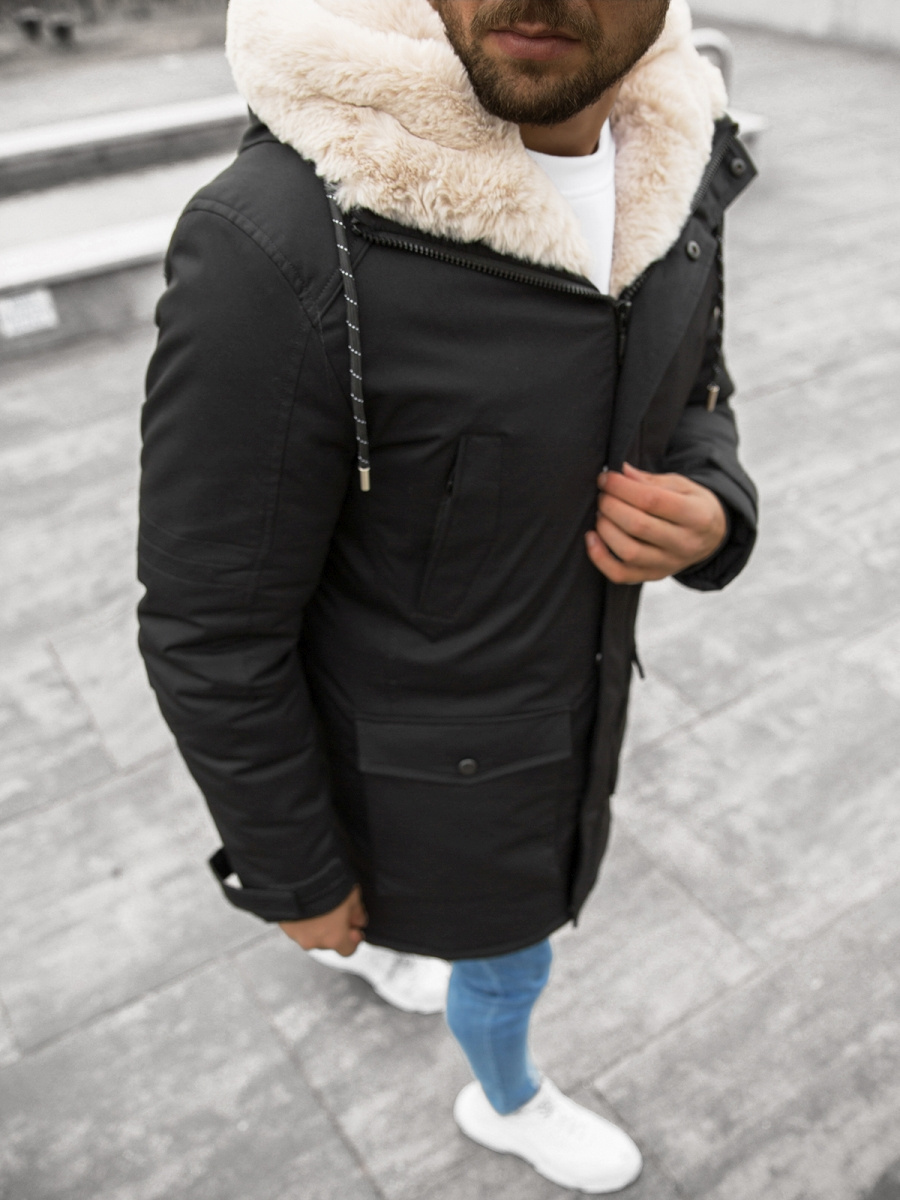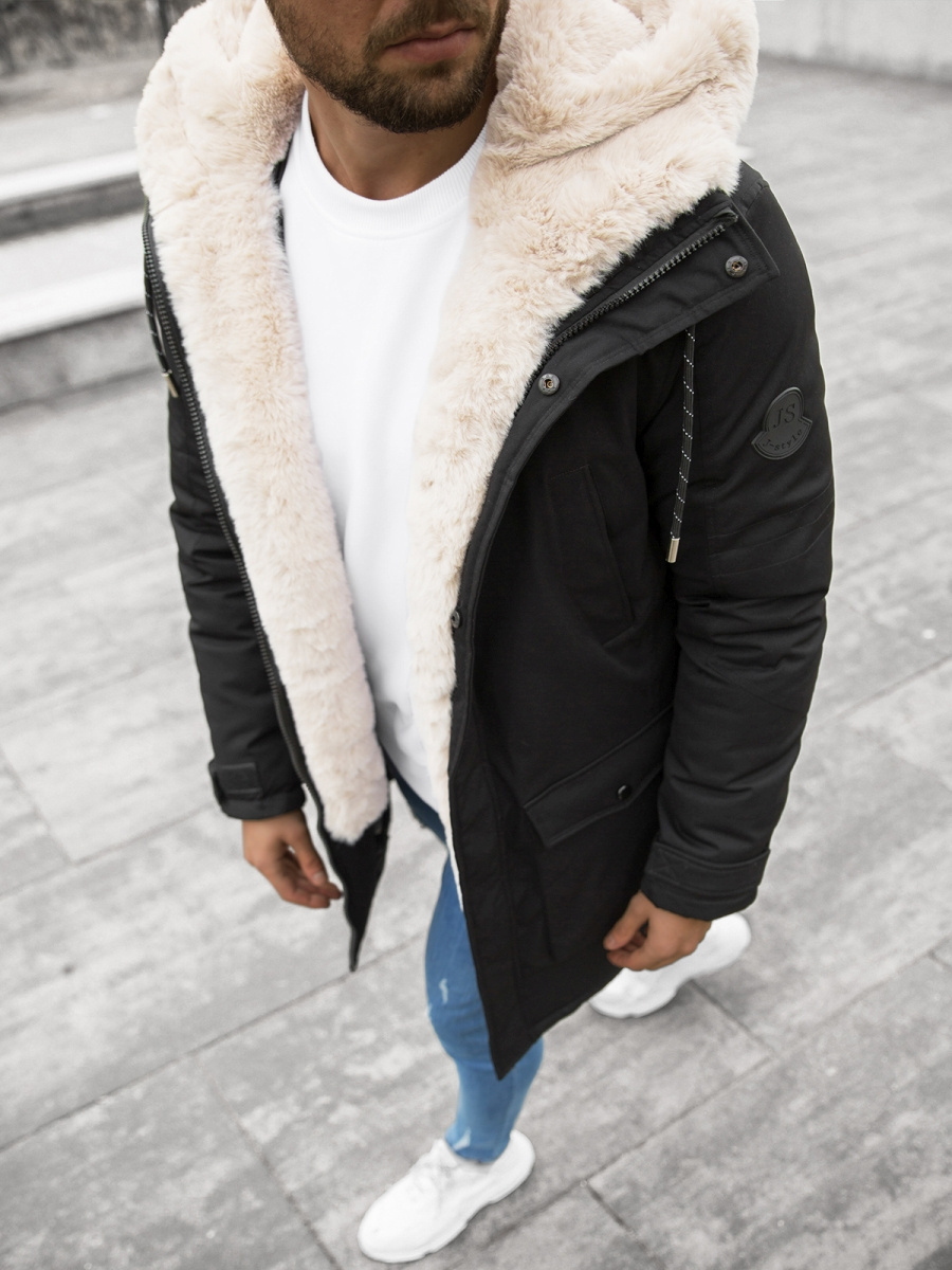 Kurtka zimowa męska parka z futerkiem czarna OZONEE JS/22M120/1
