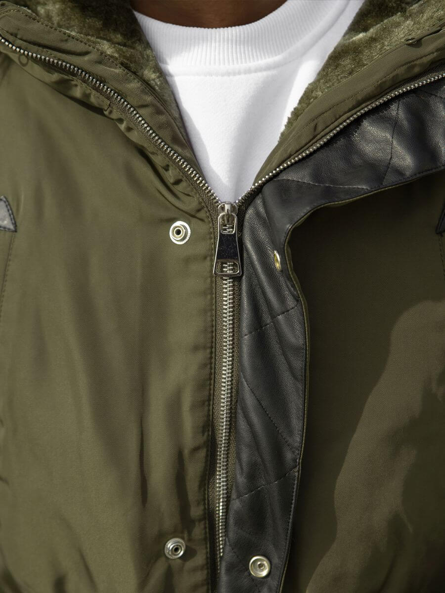 Kurtka ma fason typu parka. Cechami charakterystycznymi takiego okrycia wierzchniego są: długość za biodra, kaptur (tutaj z odpinanym futerkiem) oraz kieszenie (w tym przypadku po bokach; są one na tyle pojemne, że z łatwością zmieścimy do nich klucze, telefon czy portfel). Kurtka posiada ocieplenie z odpinanej podszewki. Została wykonana z poliuretanu, a jej podszewka – z poliestru.