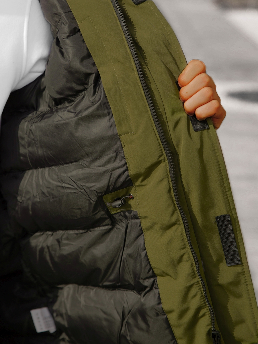 Kurtka pochodzi z najnowszej kolekcji. Ma dłuższy fason typu parka. Kurtka posiada kaptur z odpinanym futerkiem, który doskonale sprawdza się w chłodne dni oraz podczas opadów. Znajdujące się wewnątrz rękawów ściągacze skutecznie chronią przed zimnymi podmuchami wiatru. Po bokach oraz w środku parki znajdują się kieszenie, do których można schować praktyczne drobiazgi. Kurtka została wykonana z wysokiej jakości poliestru, dzięki czemu ładnie dopasowuje się do sylwetki i szybko schnie.