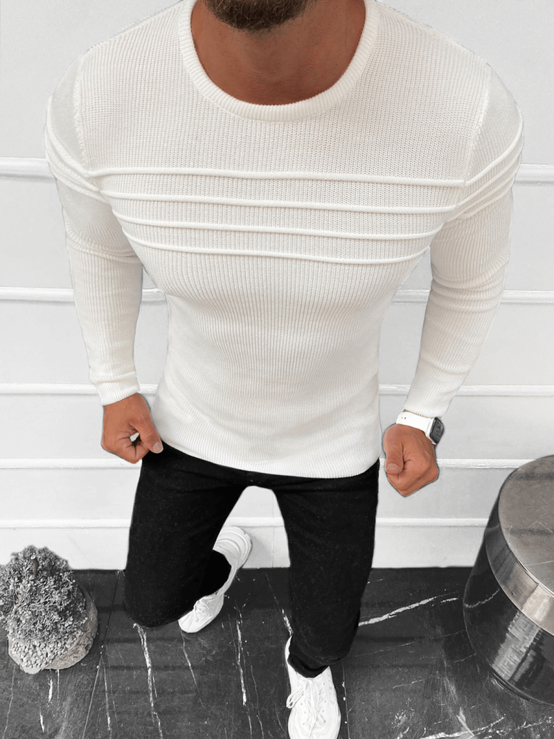 Sweter ma uniwersalny, ponadczasowy fason, który nigdy nie wychodzi z mody i który będzie pasował każdemu mężczyźnie, bez względu na wiek czy typ sylwetki. Jest on bardzo uniwersalny i nadaje się na różne okazje. Można go założyć do szkoły, na uczelnię, spotkanie ze znajomymi czy randkę. Sweter można z powodzeniem nosić zarówno jesienią, jak i zimą. Będzie się on znajomicie komponował z innymi męskimi ubraniami z asortymentu naszego sklepu internetowego. Zestawić można go na przykład z ramoneską oraz przecieranymi jeansami.