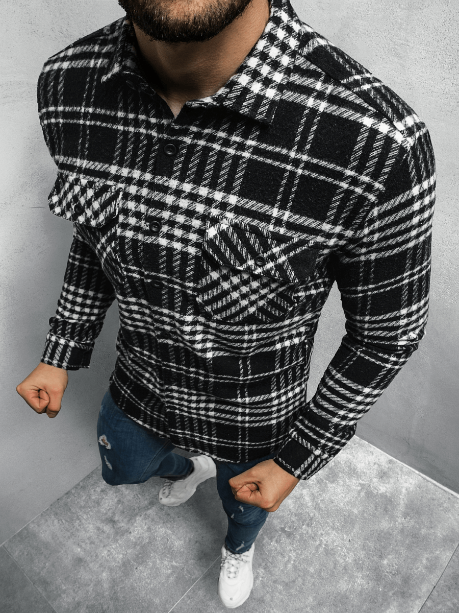 Koszula męska w kratę czarno-biała OZONEE E/3901/6