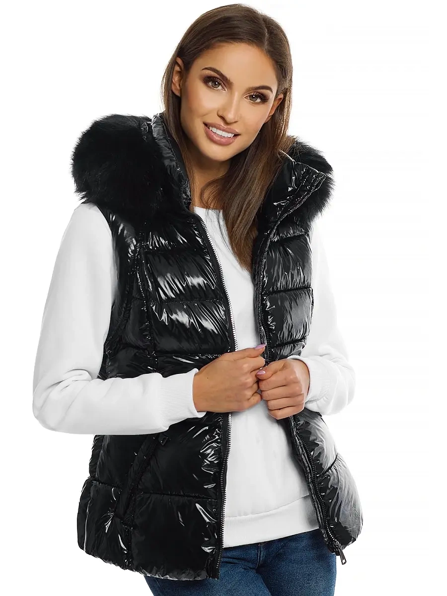 Kamizelka damska pikowana z futerkiem czarna OZONEE O/DK027/1