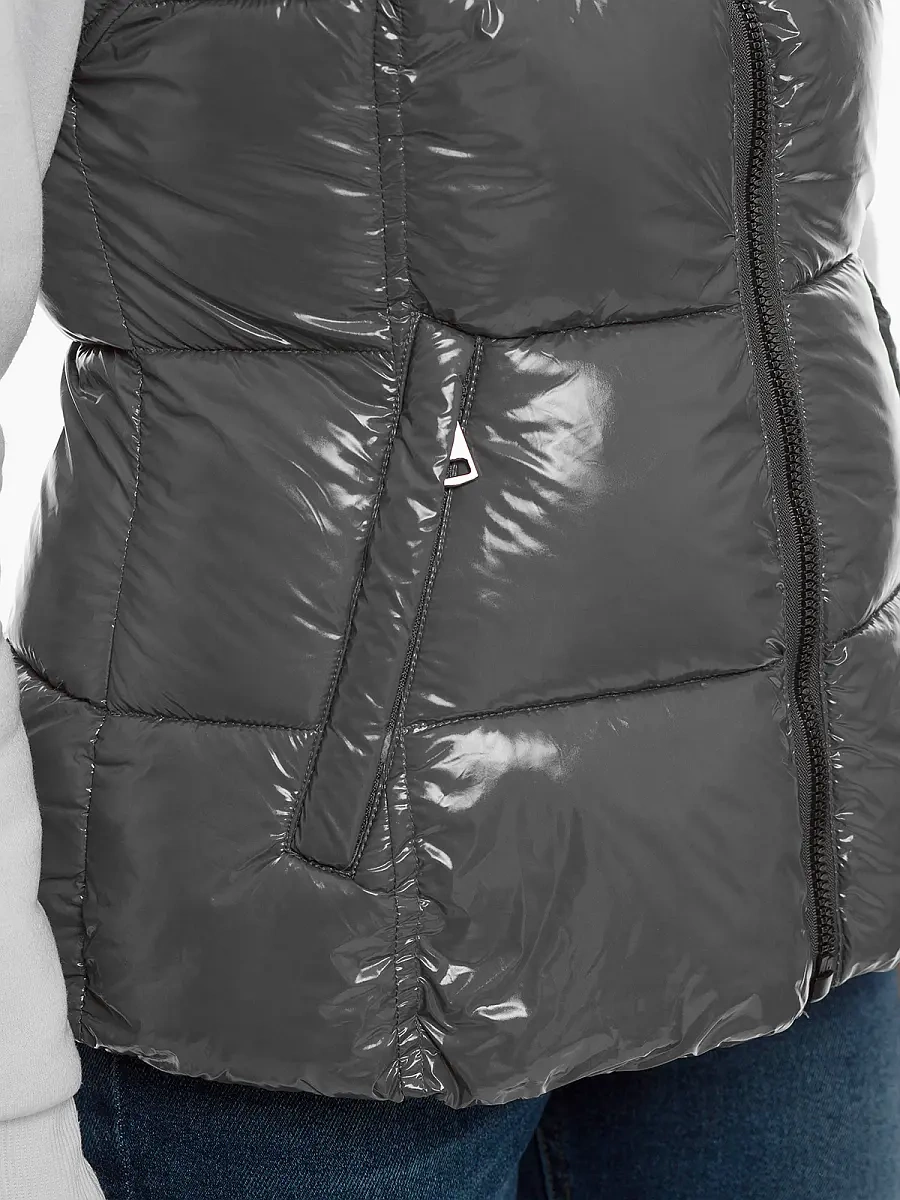Kamizelka pochodzi z najnowszej kolekcji. Pokrywające ją pikowania nadają jej oryginalnego wyglądu. Kamizelka posiada odpinany kaptur z odpinanym futerkiem, który doskonale sprawdza się w chłodne, wietrzne dni, skutecznie chroniąc głowę przez zmarznięciem. Po bokach znajdują sikę 2 kieszenie na zamek błyskawiczny, do których można schować klucze, portfel czy telefon. Kamizelka została wykonana z wysokiej jakości poliestru, dzięki czemu ładnie dopasowuje się do sylwetki i szybko schnie.