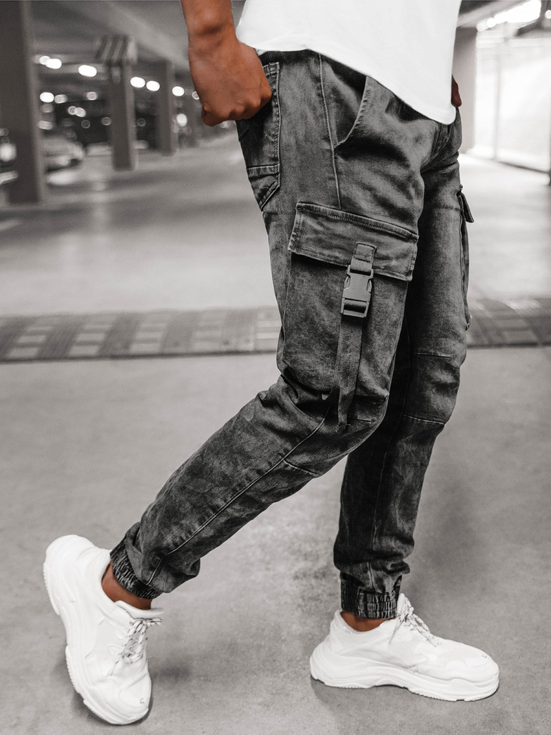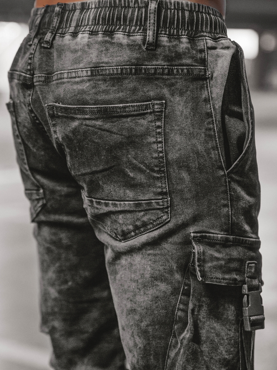 Spodnie pochodzą z najnowszej kolekcji. Znajdujące się w pasie i przy nogawkach ściągacze nadają im sportowego, casualowego charakteru. Jeansy mają kieszenie z przodu, z tyłu oraz po bokach, do których można schować portfel, telefon czy klucze. Zostały one wykonane z połączenia bawełny, poliestru oraz elastanu. Sprawia to, że ładnie dopasowują się do sylwetki i są wygodne w noszeniu.