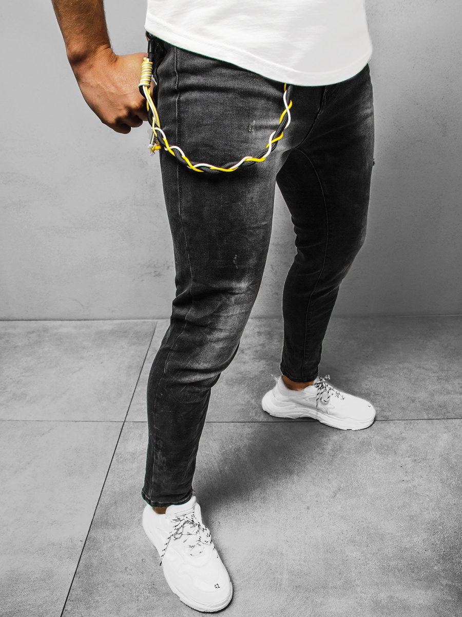 Męskie spodnie z ozdobnym łańcuchem