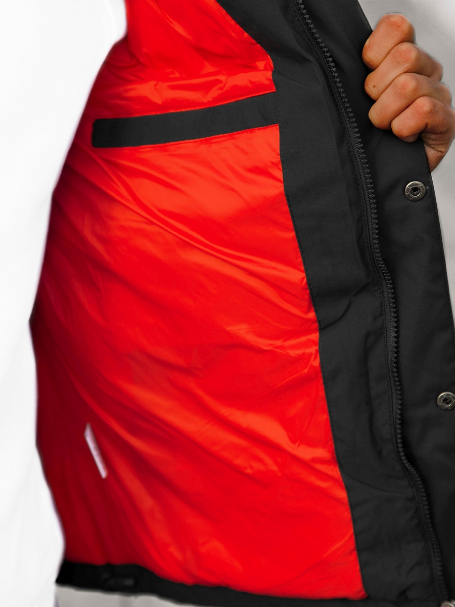 Kurtka jest zapinana na zamek błyskawiczny. Pokrywają ją pikowania. Rękawy kurtki są wykończone ściągaczami, co skutecznie chroni przed przedostawaniem się chłodnych podmuchów wiatru. Odpinany kaptur znakomicie sprawdzać będzie się w chłodne, wietrzne, deszczowe czy śnieżne dni. Kurtka ma kieszenie po bokach, na rękawie i w środku, do których schować można klucze, telefon czy portfel. Została ona wykonana w całości z poliestru, dzięki czemu szybko schnie i ładnie dopasowuje się do sylwetki.