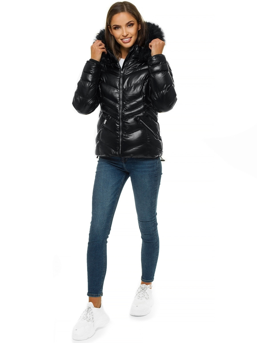 Kurtka zimowa damska z futerkiem czarna OZONEE JS/M23068/1