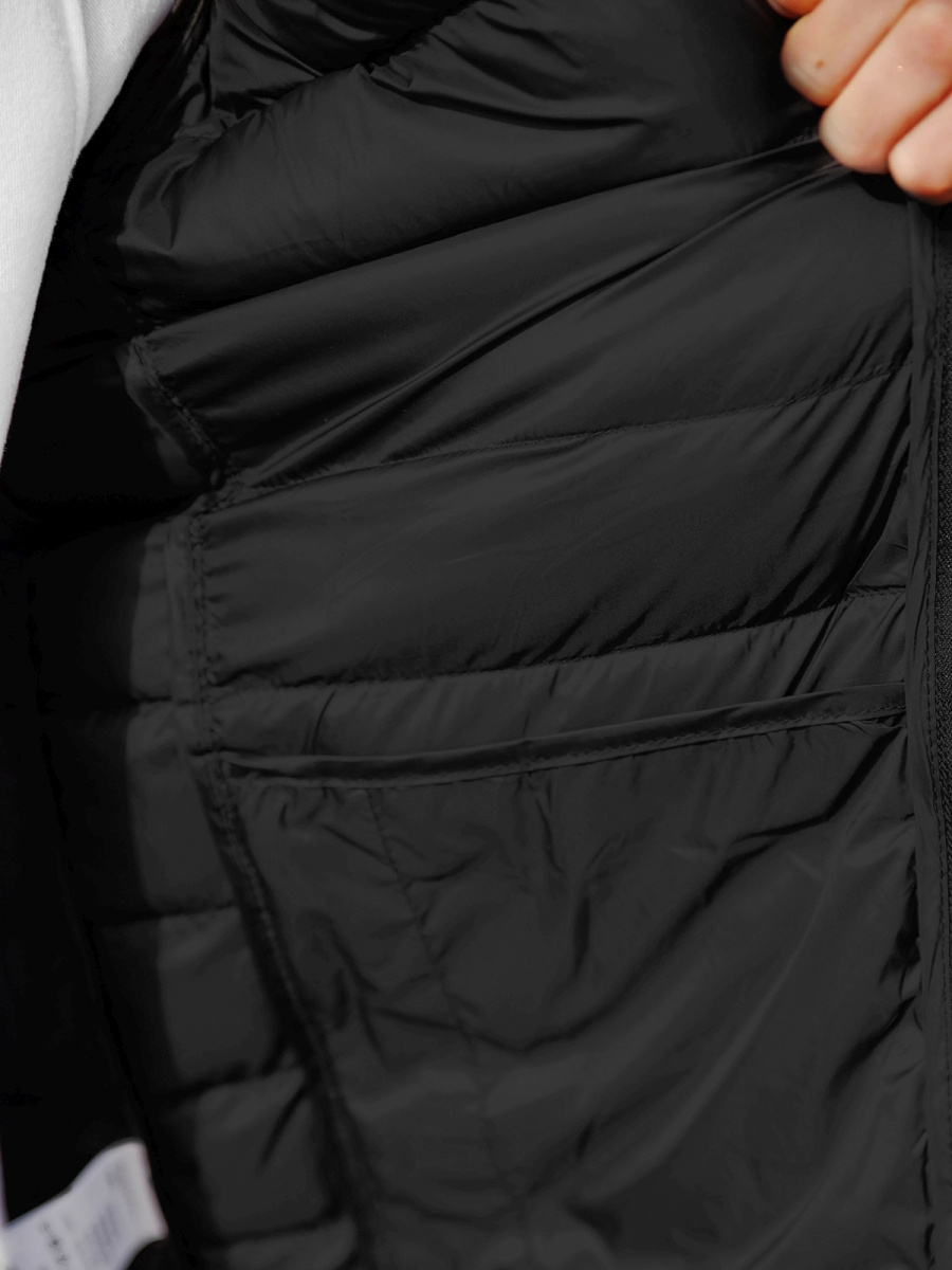 Dół oraz rękawy kurtki zostały wykończone ściągaczami, co nadaje jej sportowego charakteru. Pokrywają ją efektowne pikowania. Kurtka ma dwie kieszenie po bokach oraz jedną w środku, do których schować można telefon czy klucze. Wyprodukowana została ona w całości z poliestru, który jest materiałem szybkoschnącym.