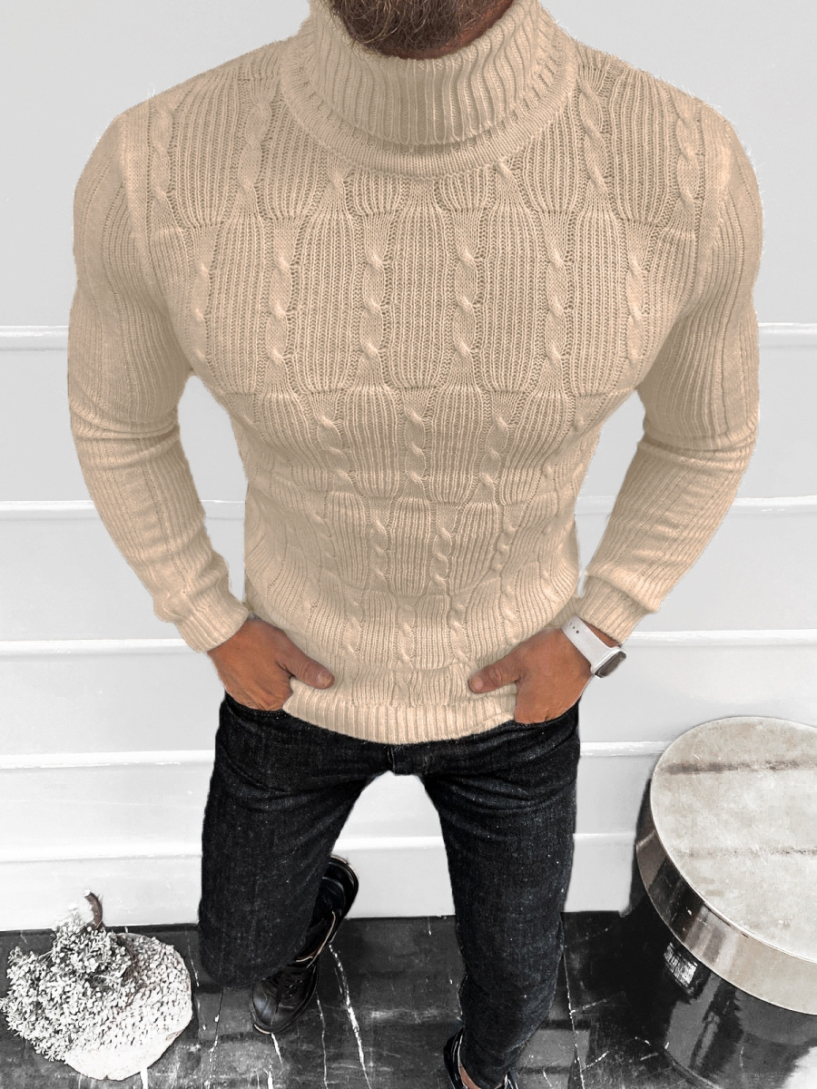 - POSIADA WYSOKI KOŁNIERZ TYPU GOLF ORAZ MODNY WYPUKŁY WZÓR