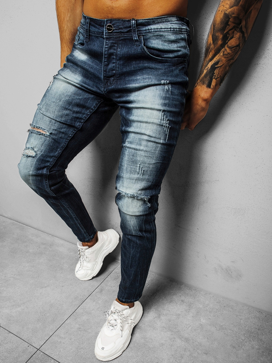 Spodnie jeansowe męskie ciemno-niebieskie OZONEE NB/MP0002BS