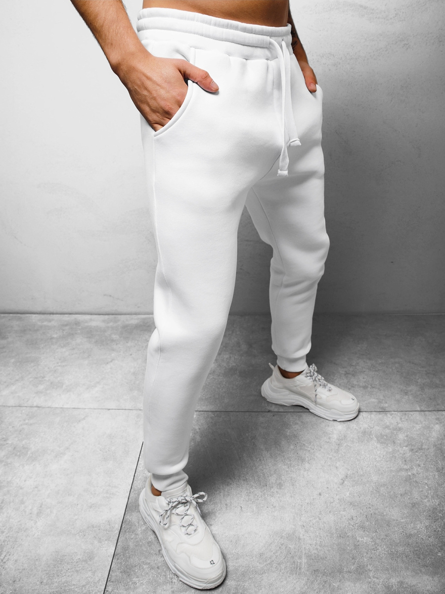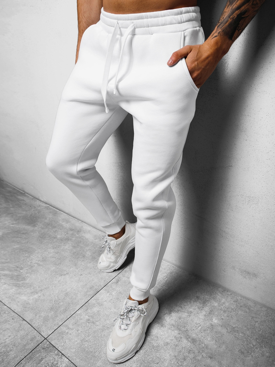 Spodnie mają pas i nogawki wykończone ściągaczami, które nadają im sportowego charakteru i zwiększają komfort noszenia. Po bokach znajdują się praktyczne kieszenie, do których schować można klucze, portfel czy telefon. Spodnie zostały wykonane w całości z wysokiej jakości bawełny, dzięki czemu są bardzo wygodne, przewiewne, przyjemne w dotyku i odporne na uszkodzenia oraz zagniecenia.