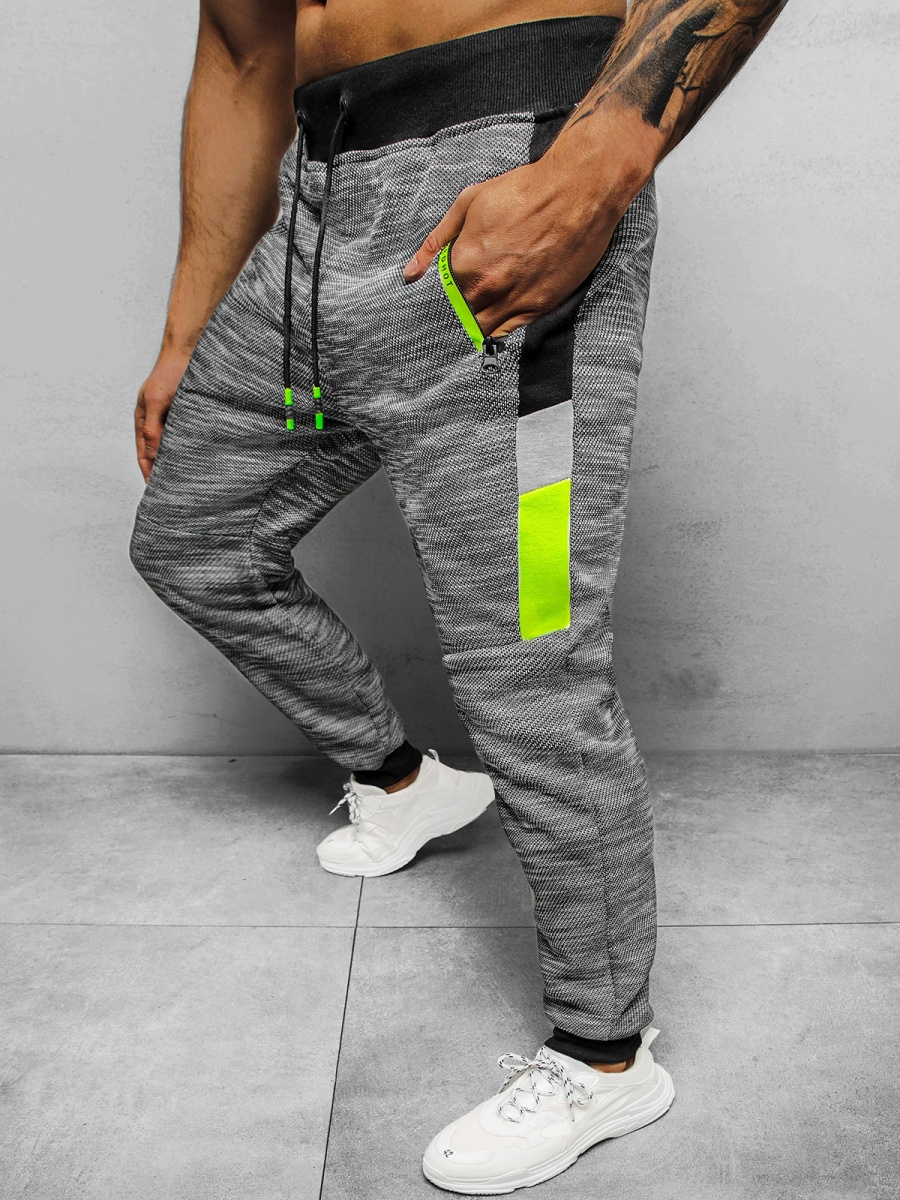 Pas i nogawki spodni zostały wykończone ściągaczami. Sprawia to, że są one bardzo wygodne i nie przesuwają się podczas noszenia. Po bokach znajdują się kieszenie na zamek błyskawiczny, do których schować można klucze, telefon czy inne niezbędne drobiazgi. Oryginalnego wyglądu nadają joggerom znajdujące się na nogawkach kontrastowe łączenia tkaniny. Model ten został wykonany z połączenia bawełny oraz poliestru. Sprawia to, że spodnie są bardzo wygodne w noszeniu, przyjemne w dotyku, nie rozciągają się, nie gniotą i ładnie dopasowują do sylwetki.