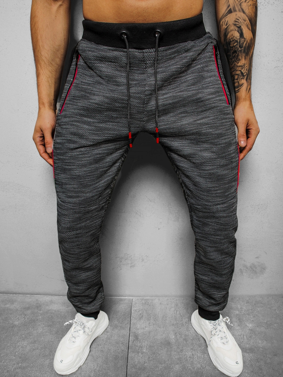 Pas i nogawki spodni zostały wykończone ściągaczami. Sprawia to, że są one bardzo wygodne i nie przesuwają się podczas noszenia. Po bokach znajdują się kieszenie na zamek błyskawiczny, do których schować można klucze, telefon czy inne niezbędne drobiazgi. Oryginalnego wyglądu nadają joggerom znajdujące się na nogawkach kontrastowe łączenia tkaniny. Model ten został wykonany z połączenia bawełny oraz poliestru. Sprawia to, że spodnie są bardzo wygodne w noszeniu, przyjemne w dotyku, nie rozciągają się, nie gniotą i ładnie dopasowują do sylwetki.