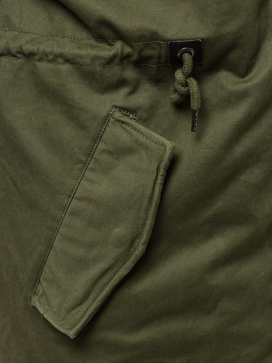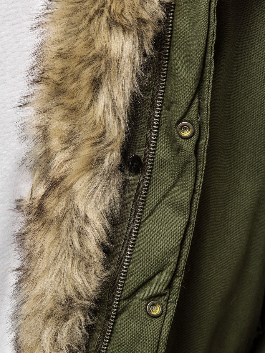 Kurtka ma fason typu parka. Sięga za biodra i posiada duże kieszenie — 2 po bokach i 1 w środku, do których schować można niezbędne drobiazgi, takie jak klucze, telefon czy portfel. Parka ma kaptur, który doskonale sprawdzać będzie się w chłodne, wietrzne, deszczowe dni. Oryginalnego wyglądu dodaje jej odpinane sztuczne futerko przy kapturze na przodzie przy zamku. Kurtka została wykonana w całości z bawełny, dzięki czemu jest wygodna w noszeniu, przewiewna i miła w dotyku.