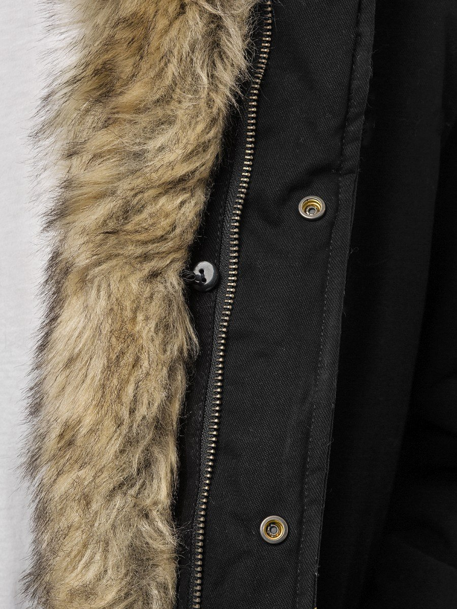 Kurtka ma fason typu parka. Sięga za biodra i posiada duże kieszenie — 2 po bokach i 1 w środku, do których schować można niezbędne drobiazgi, takie jak klucze, telefon czy portfel. Parka ma kaptur, który doskonale sprawdzać będzie się w chłodne, wietrzne, deszczowe dni. Oryginalnego wyglądu dodaje jej odpinane sztuczne futerko przy kapturze na przodzie przy zamku. Kurtka została wykonana w całości z bawełny, dzięki czemu jest wygodna w noszeniu, przewiewna i miła w dotyku.