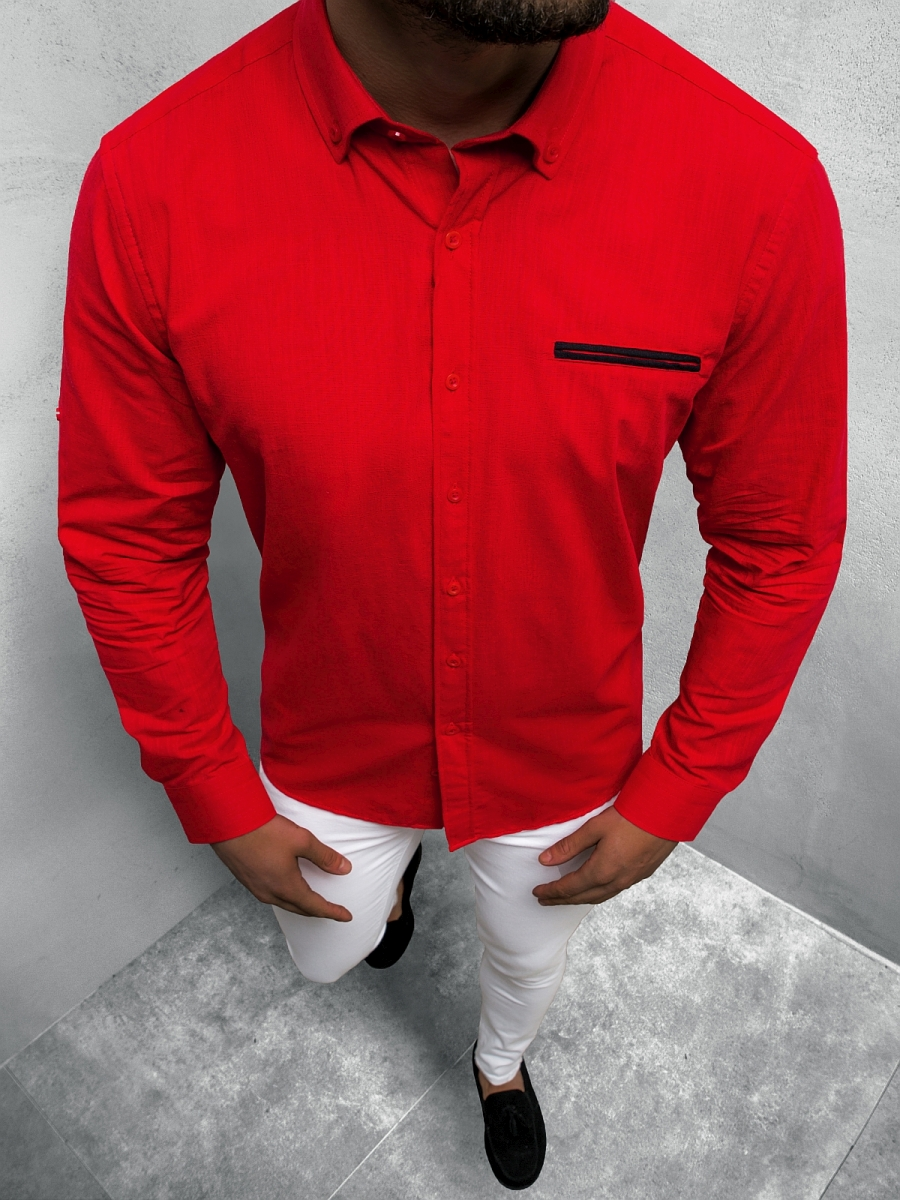 Koszula męska długi rękaw czerwona OZONEE O/3015Z