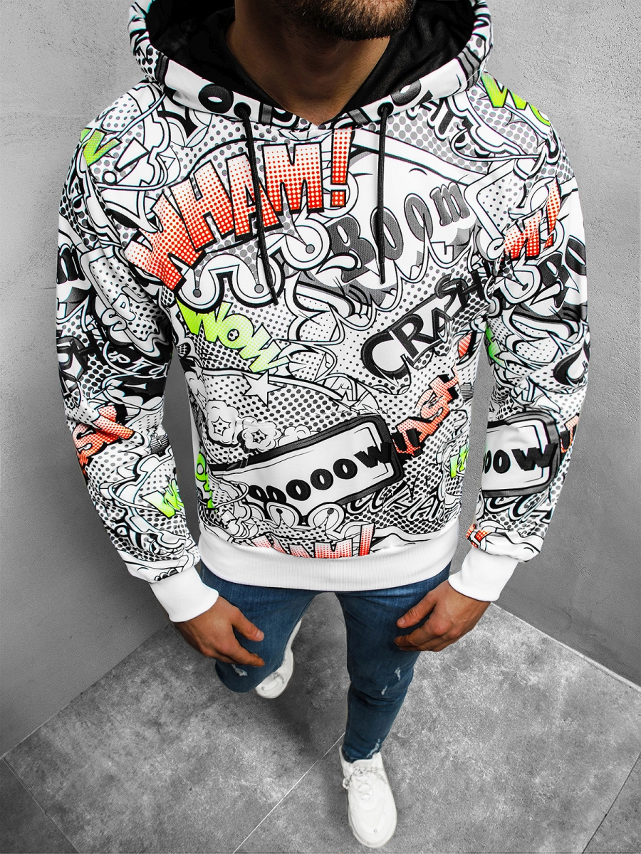 Bluza pochodzi z nowej kolekcji. Jest wkładana przez głowę i posiada praktyczny kaptur, który skutecznie chroni przed chłodem. Dół i rękawy bluzy zostały wykończone ściągaczami nadającymi całości sportowego charakteru. Na przodzie znajduje się kieszeń typu kangurka. Z przodu oraz z tyłu umieszczony jest efektowny, przykuwający wzrok nadruk. Bluza została wykonana z wysokiej jakości bawełny oraz poliestru, dzięki czemu ładnie układa się na ciele, jest wygodna w noszeniu i przyjemna w dotyku.