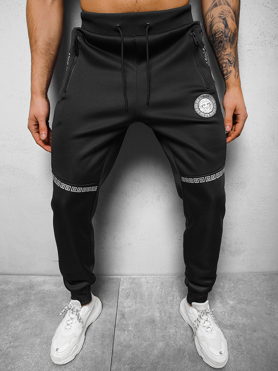 Spodnie dresowe męskie czarno-srebrne OZONEE O/HM665